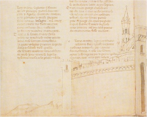 Firenze, Biblioteca Nazionale Centrale, II.II.90, f. 67v. Veduta delle mura della città di Troia.