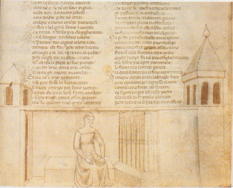 Firenze, Biblioteca Nazionale Centrale, II.II.90, f. 74r. Criseide siede da sola nella sua stanza.