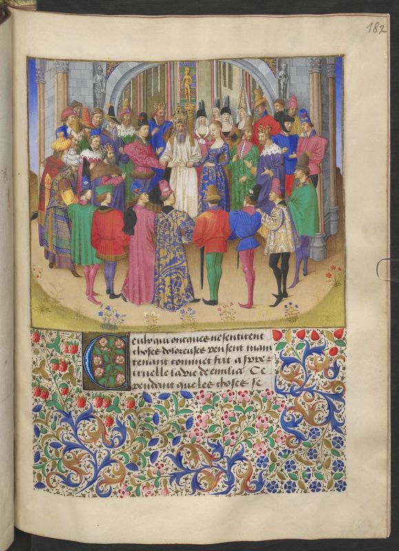 Vienna, Österreichische Nationalbibliothek, 2617, f. 182r. Vengono celebrate le nozze tra Emilia e Palemone.
