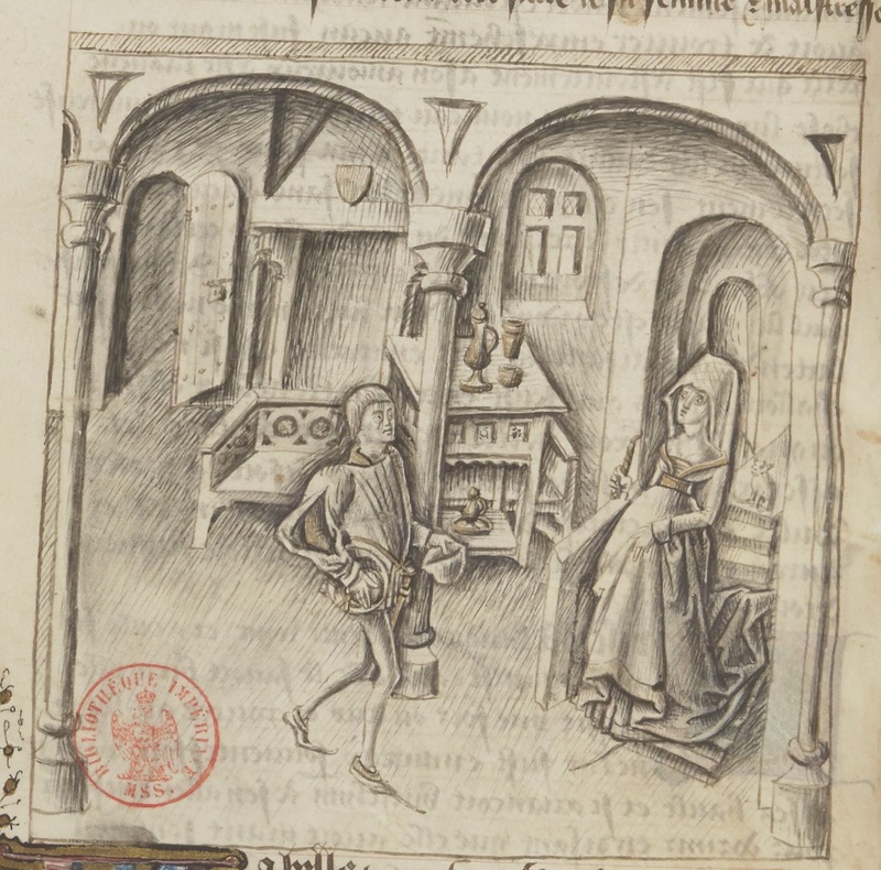 Miniatore francese (1455-1456), Pandaro consegna a Criseide la lettera di Troiolo