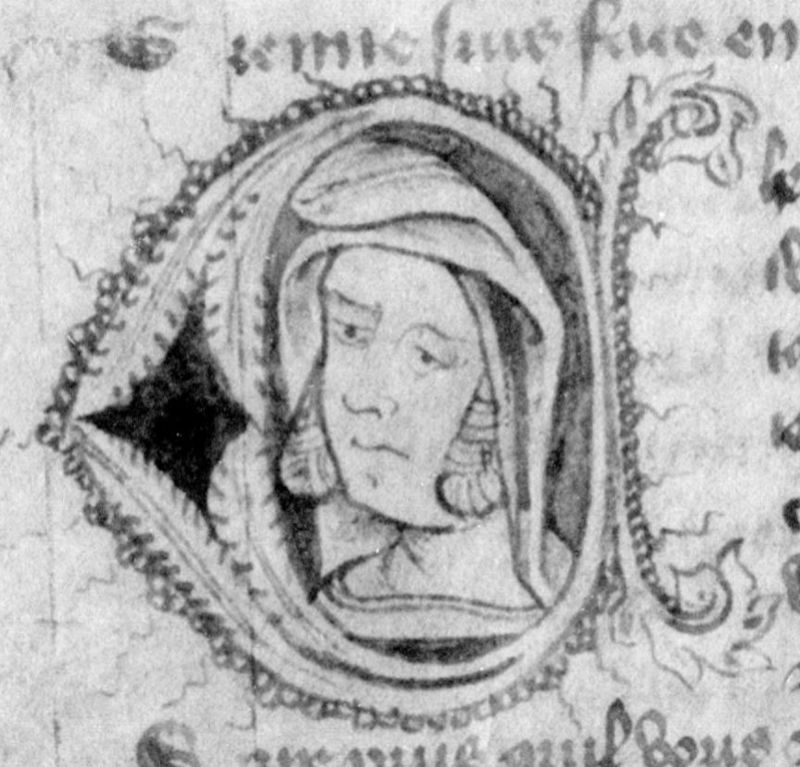 Parigi, Bibliothèque Nationale de France, It. 582, f. 122v. Busto di Emilia, all'interno dell'iniziale figurata Q(uanto).