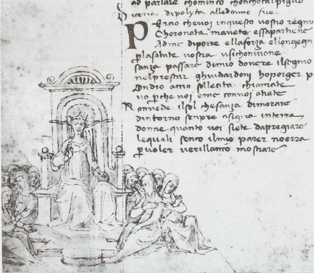 Napoli, Biblioteca Statale Oratoriana del Monumento Nazionale dei Gerolamini, C. F. 2.8, f. 5v. Il copista del manoscritto è Guido di Piero di Giovanni de Ricci. La regina Ippolita…