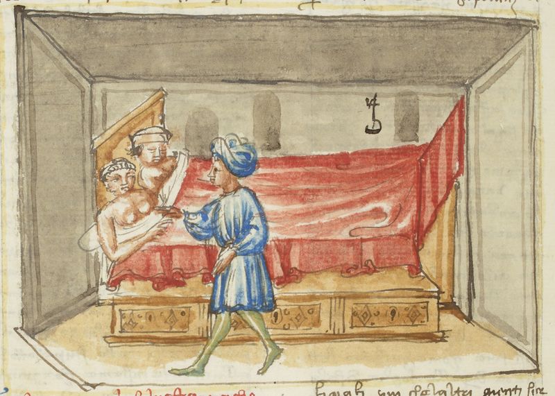 Parigi, Bibliothèque Nationale de France, It. 63, f. 155v. Il copista del manoscritto, datato 10 ottobre 1427, è Ludovico di Salvestro Ceffini. Il marito di Salvestra trova la mogl…