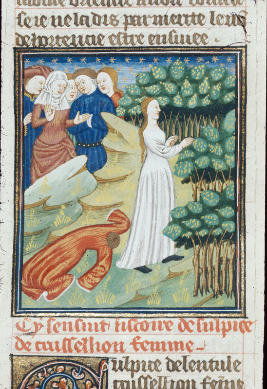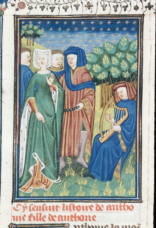 Londra, British Library, Royal 16 G V, f. 104v. Antonia, rimasta vedova, rifiuta i suoi pretendenti.