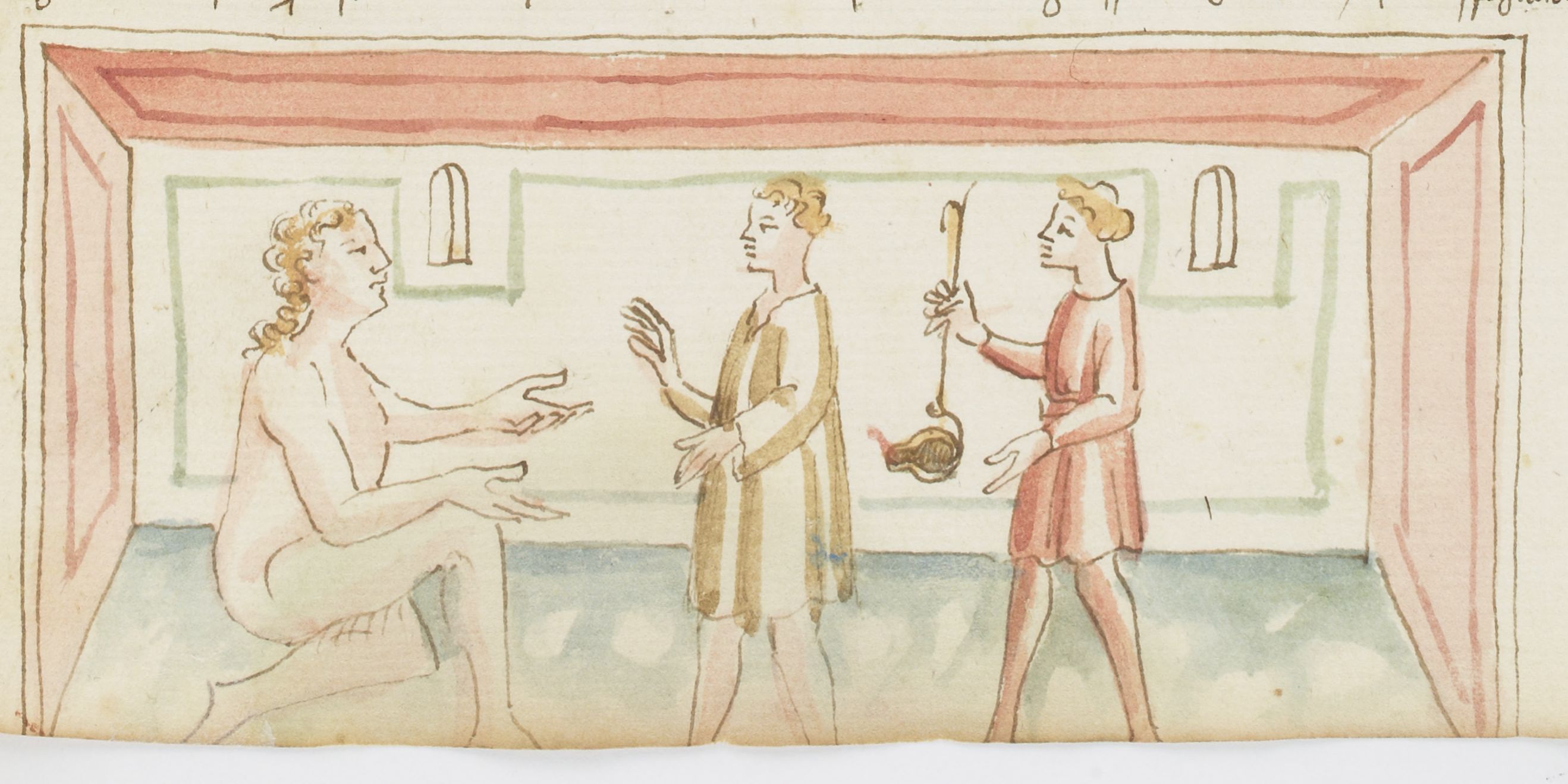 Parigi, Bibliothèque Nationale de France, It. 63, f. 275r. Il copista del manoscritto, datato 10 ottobre 1427, è Ludovico di Salvestro Ceffini. Donno Gianni fa spogliare Gemmata per trasformarla in una cavalla, mentre il marito Pietro lo assiste tenendo un lume.