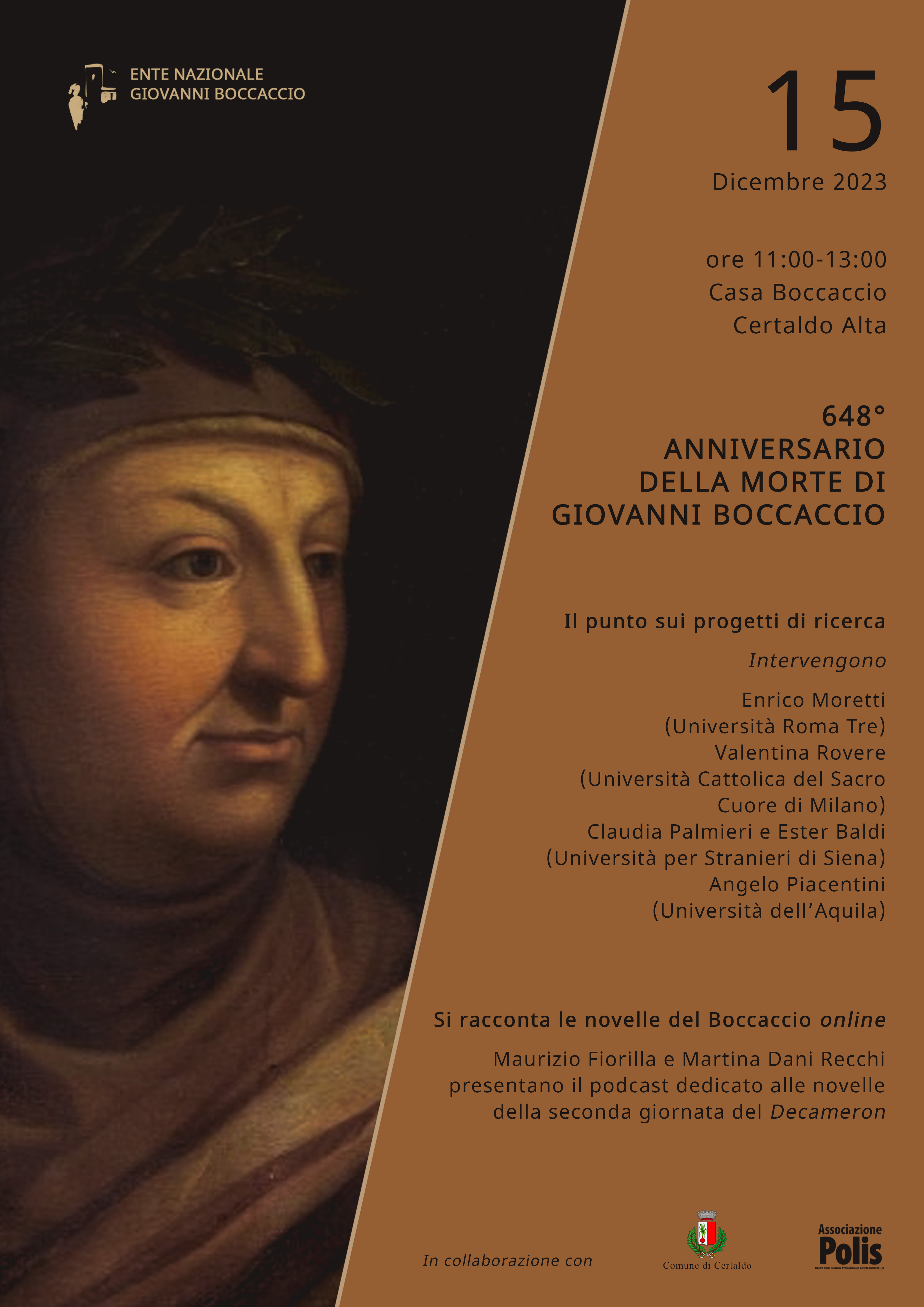 648° Anniversario della morte di Boccaccio. Una giornata dedicata ai progetti dell'Ente Nazionale Giovanni Boccaccio. Dal VocaBo alla biblioteca “virtuale”
