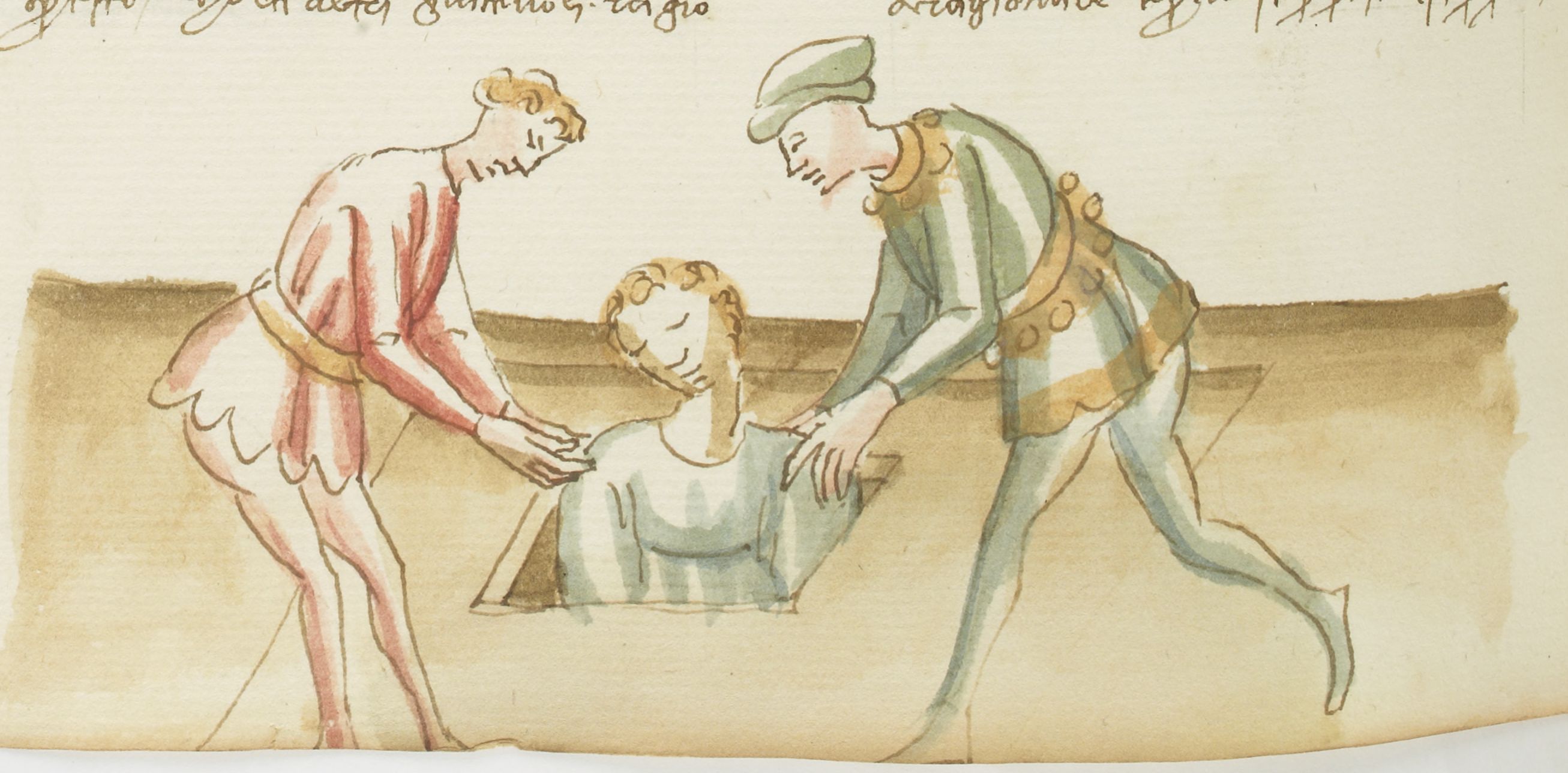 Parigi, Bibliothèque Nationale de France, It. 63, f. 280v. Il copista del manoscritto, datato 10 ottobre 1427, è Ludovico di Salvestro Ceffini. Gentile Carisendi salva Catalina dalla tomba con l'aiuto di un amico.