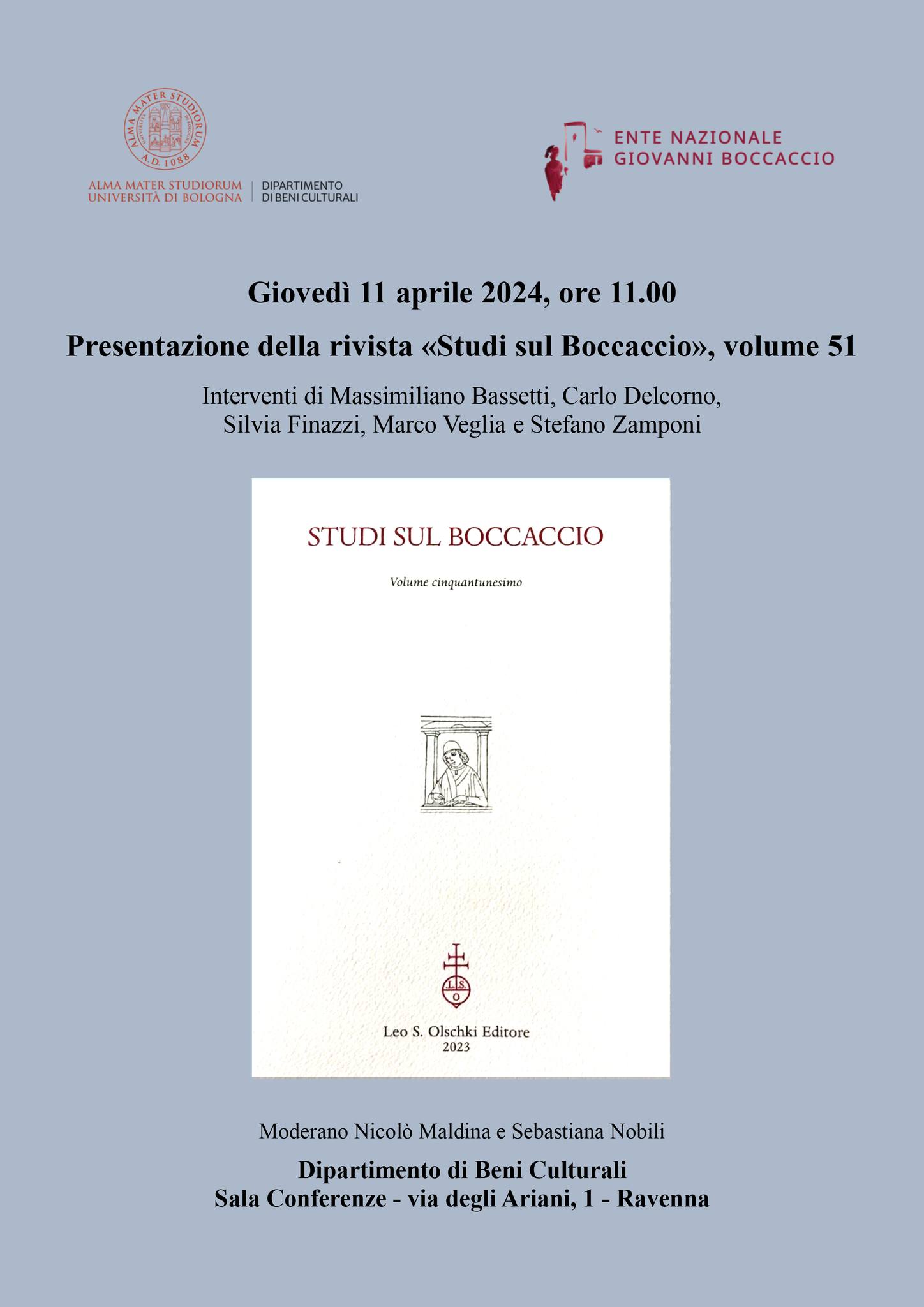 Presentazione del volume 51 della rivista Studi sul Boccaccio, edita sotto gli auspici del nostro Ente.