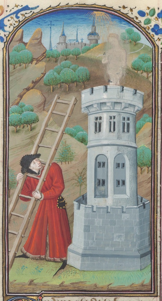 Scuola del Maestro di Bedford (1460 c.), Rinieri lascia la moglie in cima ad una torre