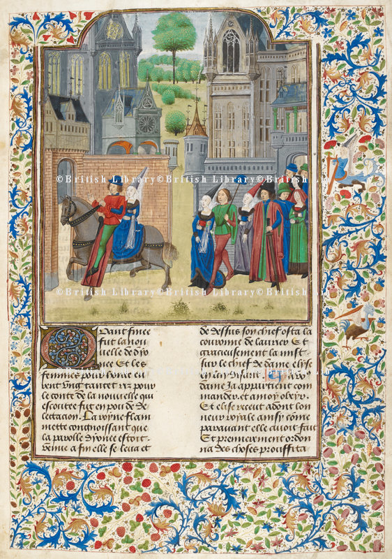 Maestro di Harley Froissart (1475 c.), Madonna Oretta cavalca con il suo accompagnatore