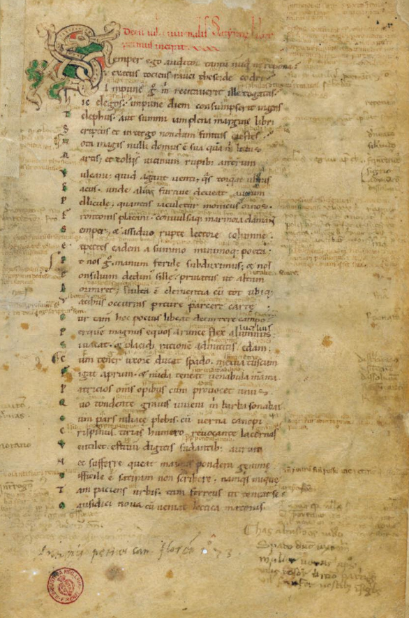 Membr., cc. I + 57 + II’, mm. 220 × 145, sec. XII. D.I. Iuvenalis, "Satyrae". Segnatura della parva libraria: II 6. Di mano del B. solo le maniculae alle cc. 22r e 34r. Postille e notabilia di mani piú tarde. Appartenuto nel sec. XVI ad Antonio Petrei.