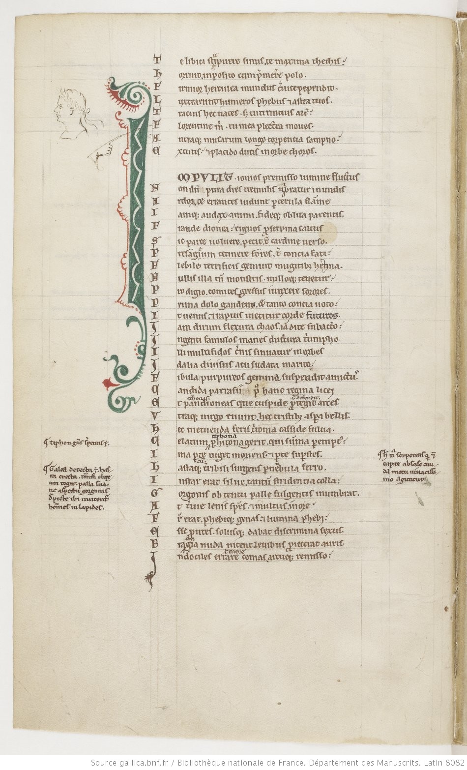 Membr., cc. III + 106 + I’, mm. 262 × 161, secc. XII/XIII. C. Claudianus, "De raptu Proserpinae" (I 139-214 e III 280-361), "De raptu Proserpinae", "In Rufinum", "De bello Gildonico", "In Eutropium", "De nuptiis Honorii et Mariae", "De III consulatu Honorii", "De IV consulatu Honorii", "De consulatu Theodori", "De IV consulatu Honorii" (601-11), "De consulatu Stiliconis", "De VI consulatu Honorii", "De bello Getico". B. vergò nel cod. solo la testina coronata (con ogni probabilità raffigurante Claudiano), accompagnata da manicula, a c. 4v, forse nel 1351 a Padova, dove era ospite del Petrarca, cui apparteneva il ms., che contiene infatti anche suoi interventi marginali: postille (ad es. c. 11v), maniculae (ad es. c. 62v) e graffe (ad es. c. 57r). Le opere di Claudiano sono accompagnate da un ricco corredo di glosse di tradizione (di mano del copista).