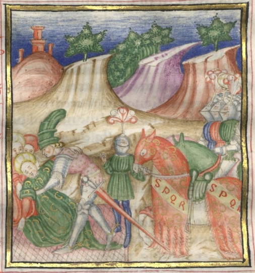 Miniatore lombardo (1450 c.), Lelio sorregge Giulia svenuta