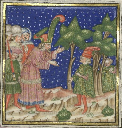 Miniatore lombardo (1450 c.), Il re discute con Florio dinanzi ad un boschetto