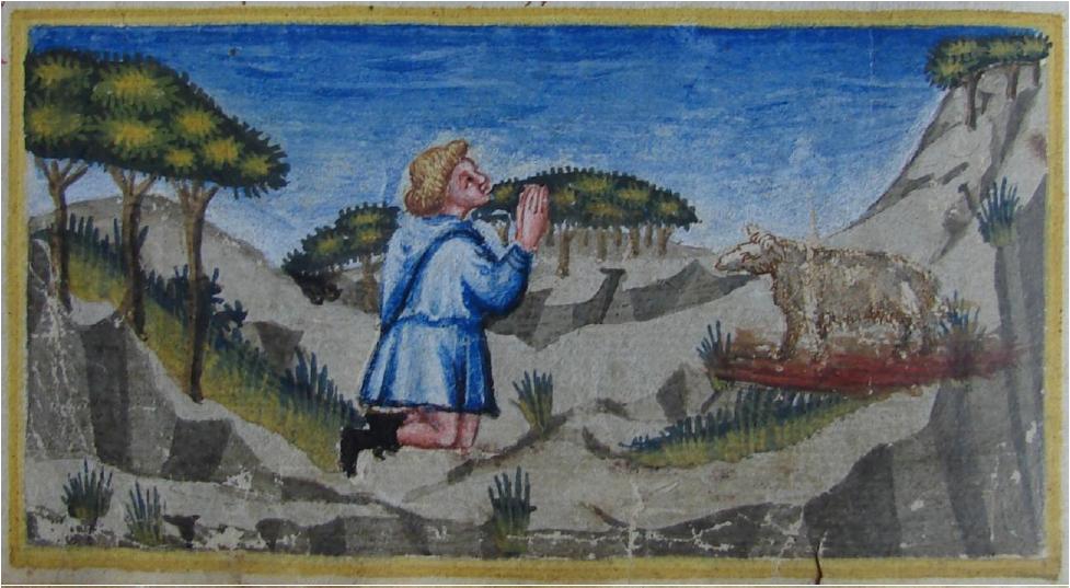 Venezia, Biblioteca Nazionale Marciana, It. IX. 63, f. 22v. Africo offre una pecora in sacrificio a Venere.