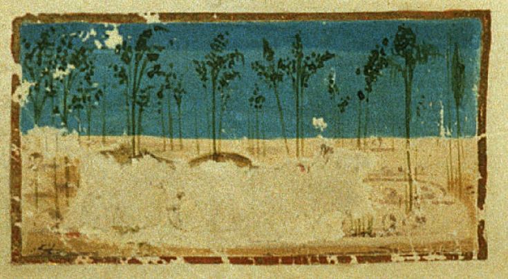 Firenze, Biblioteca Riccardiana, Ricc. 1503, f. 79v. Il copista del manoscritto, datato 1482, è Nicola Mangona. Scena erotica (?). La miniatura è parzialmente abrasa.