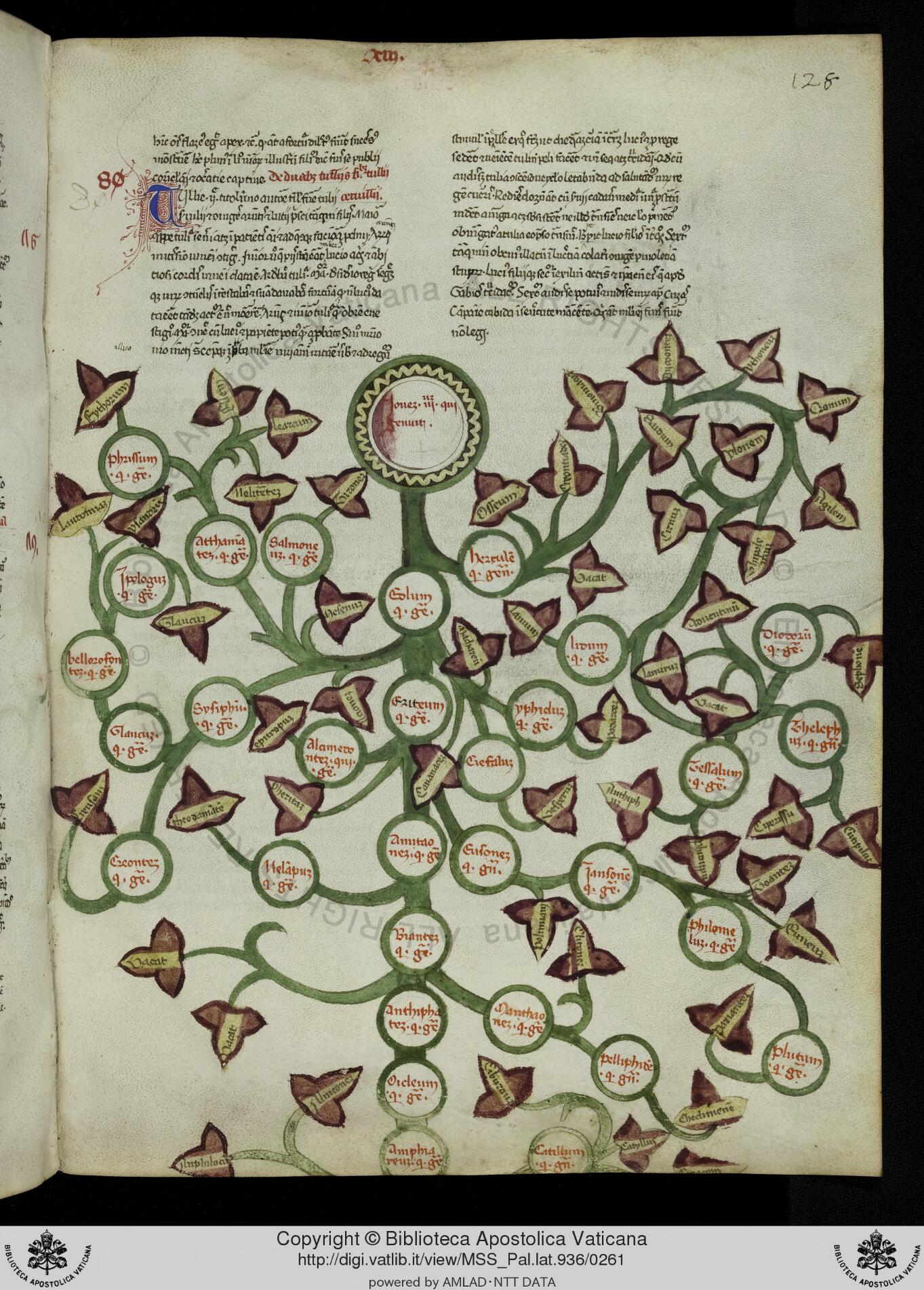 Città del Vaticano, BAV, Pal. lat. 936, f. 128r. Albero genealogico di Ercole e Eolo.