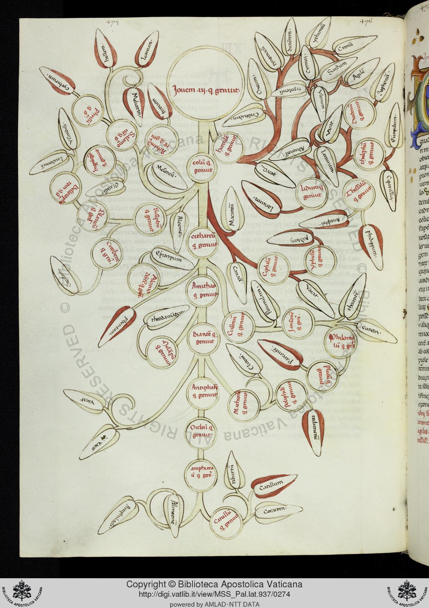 Città del Vaticano, BAV, Pal. lat. 937, f. 133v. Albero genealogico di Ercole e Eolo.