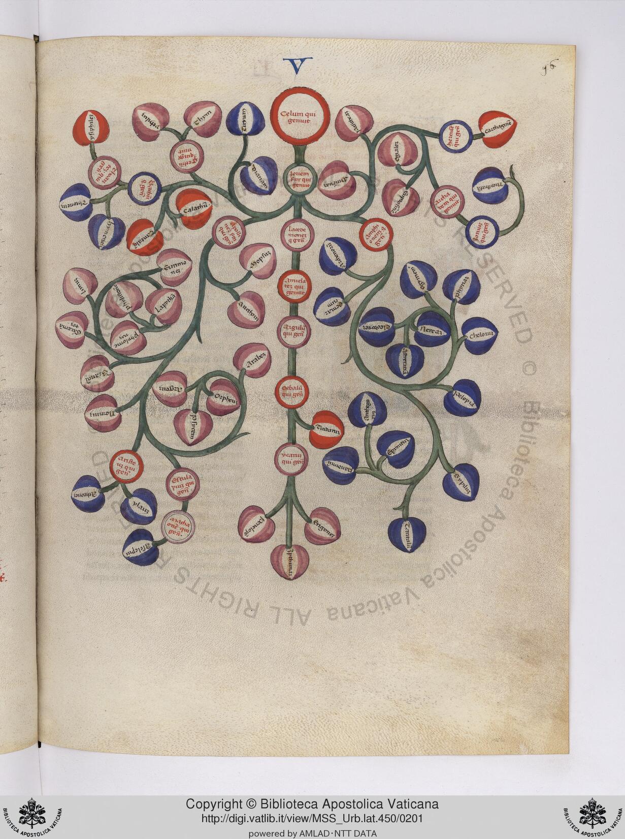 Città del Vaticano, BAV, Urb. lat. 450, f. 96r. Albero genealogico di Giove secondo.