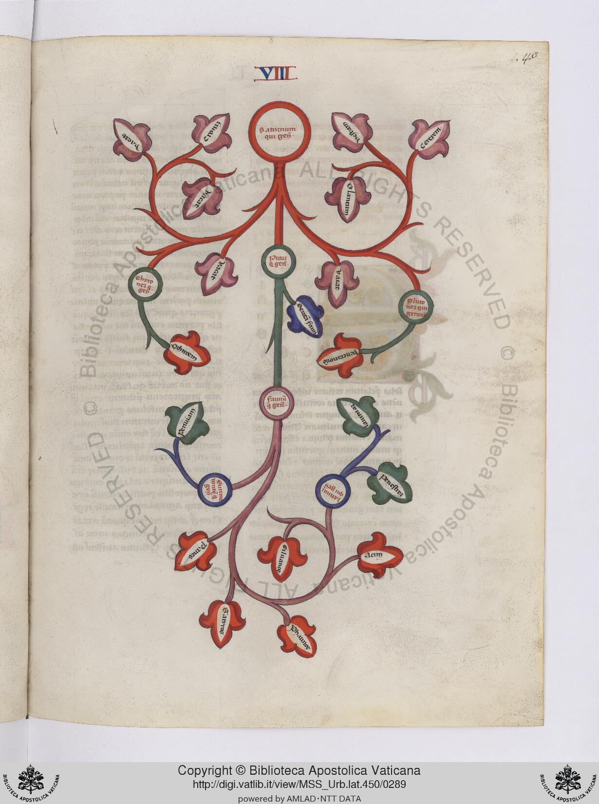 Città del Vaticano, BAV, Urb. lat. 450, f. 140r. Albero genealogico di Saturno.