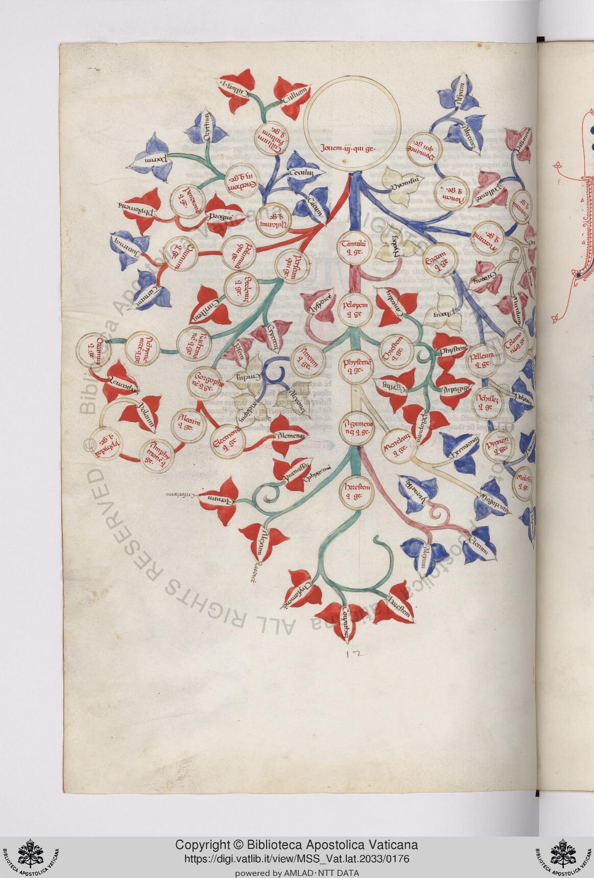 Città del Vaticano, BAV, Vat. lat. 2033, f. 86v. Albero genealogico di Giove terzo.