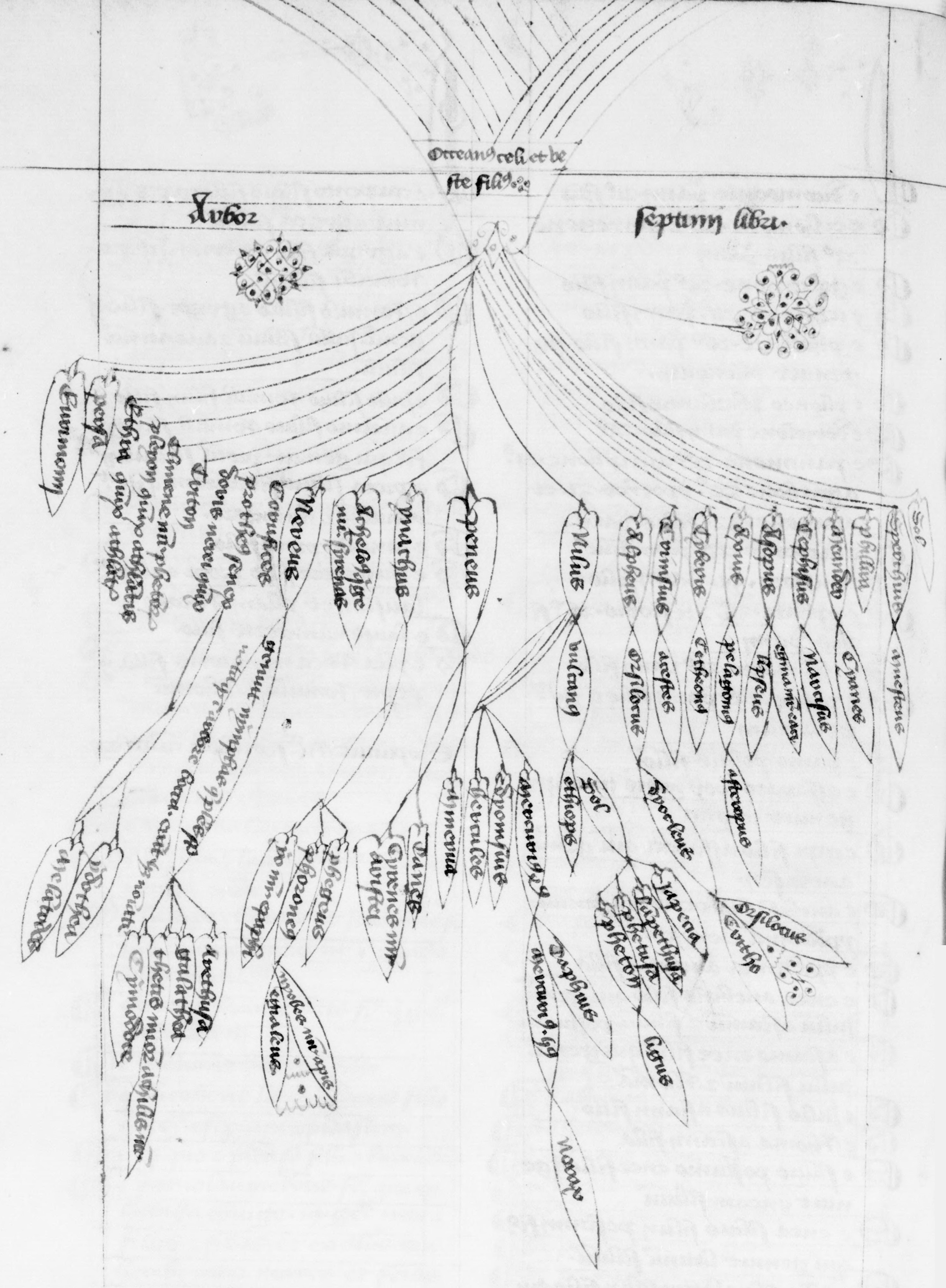 Parigi, Bibliothèque Nationale de France, Lat. 14636, f. 205v. Albero genealogico di Oceano.