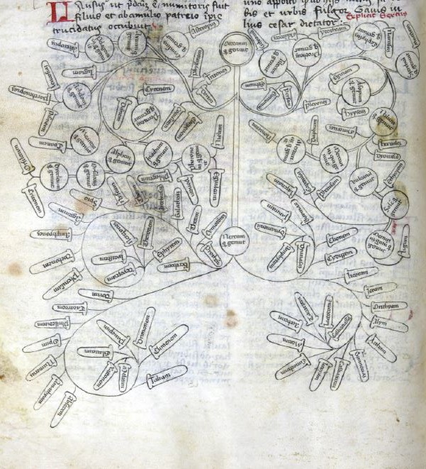 València, Universitat de València. Biblioteca Històrica, BH Ms. 291, f. 73v. Albero genealogico di Oceano.
