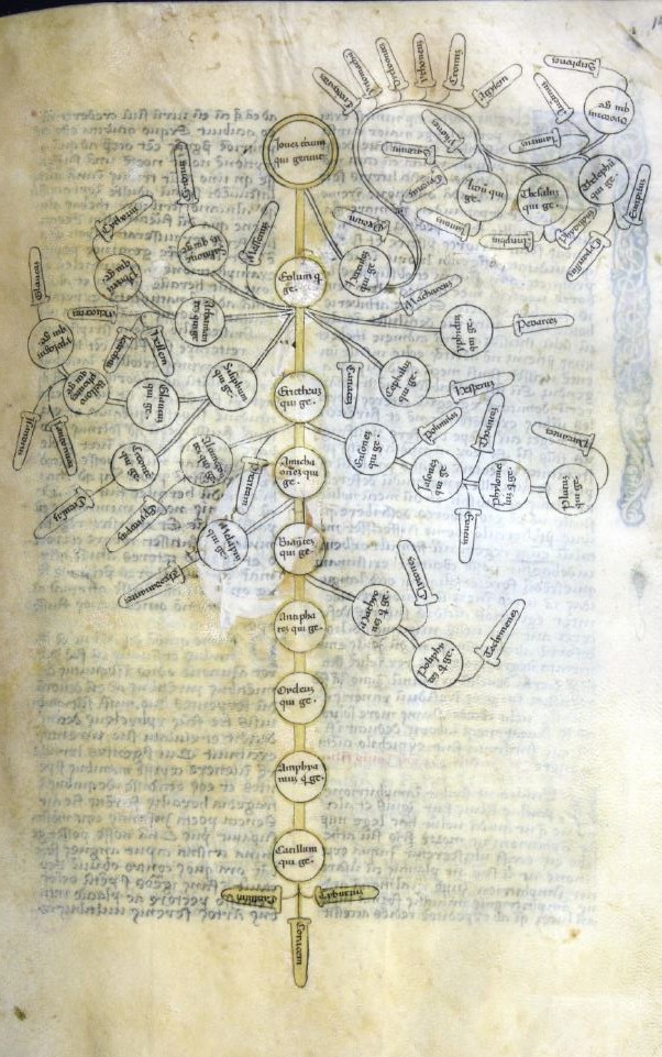 València, Universitat de València. Biblioteca Històrica, BH Ms. 291, f. 140r. Albero genealogico di Ercole e Eolo.