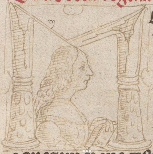 Cambridge (Mass.), Harvard University, Houghton Library, Richardson 41, f. 9r. Profilo di donna con un libro, all'interno dell'iniziale figurata M(edea).