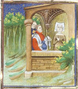 Londra, British Library, Royal 20 C V, f. 136v. Agrippina rifiuta l'acqua e il cibo offertogli da un servitore.
