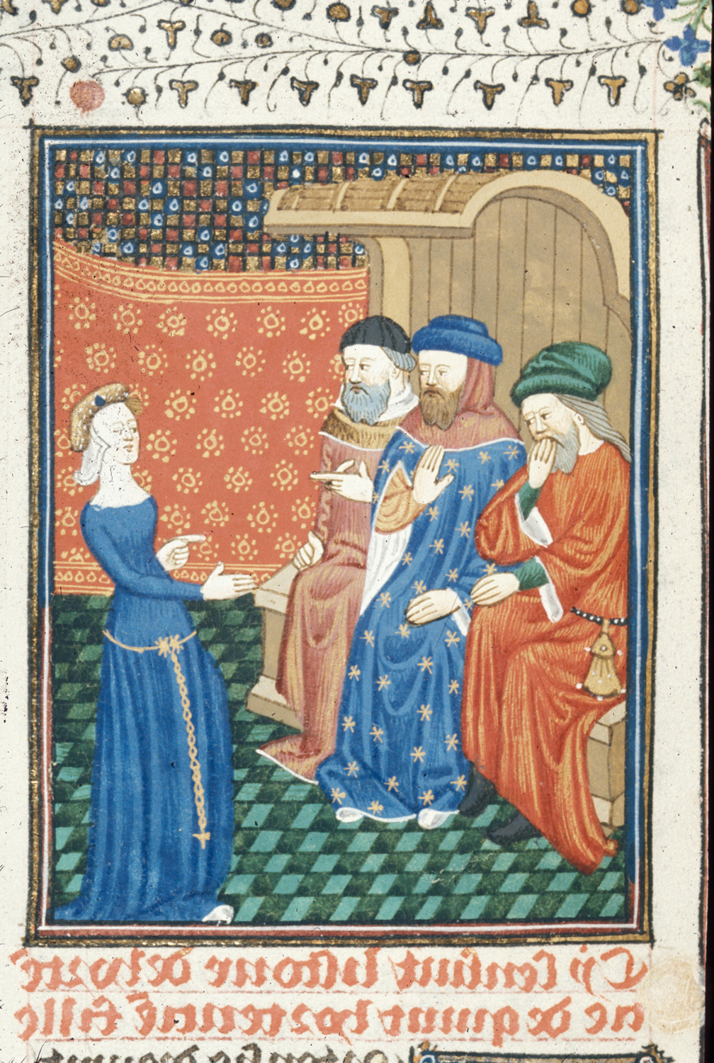 Londra, British Library, Royal 16 G V, f. 98r. Ortensia supplica i triumviri.