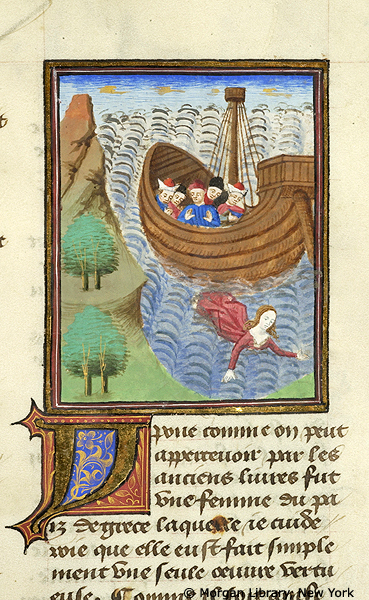 New York, Pierpont Morgan Library, M 381, f. 30r. Ippona si getta in mare per sfuggire ai suoi rapitori.