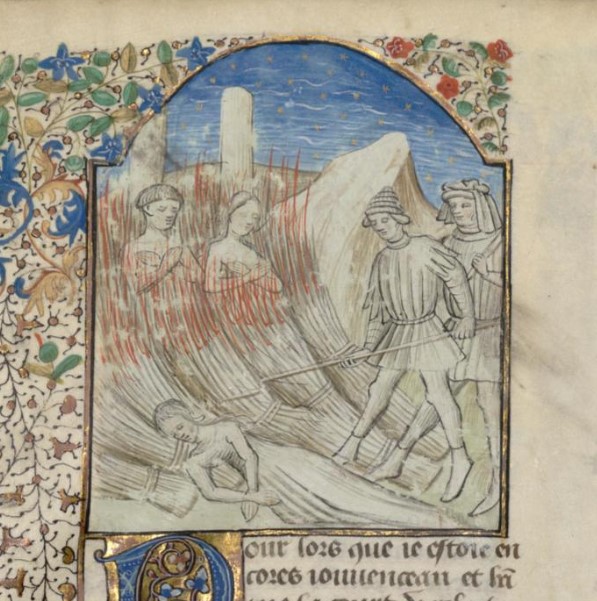 Miniatore francese (1425-1450), Filippa da Catania e i suoi figli vengono arsi sul rogo