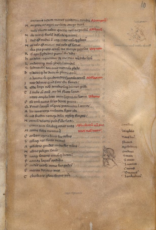 Membr., cc. III + 106 + I’, mm. 262 × 161, secc. XII/XIII. C. Claudianus, "De raptu Proserpinae" (I 139-214 e III 280-361), "De raptu Proserpinae", "In Rufinum", "De bello Gildonic…