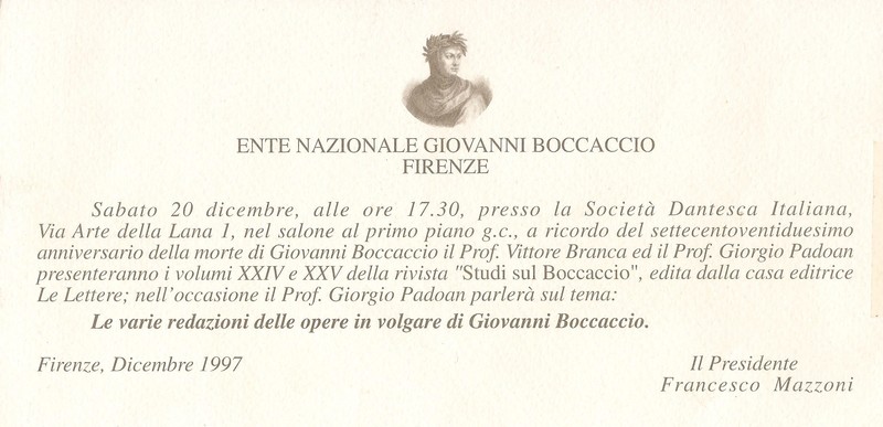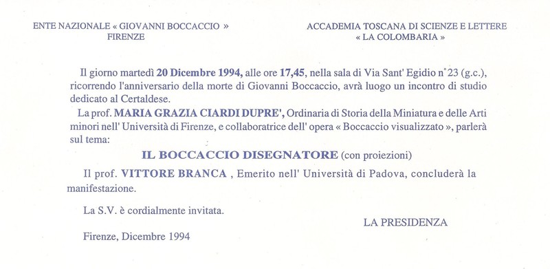 Incontro di studio a ricordo del 720° anniversario della morte di Giovanni Boccaccio27 gennaio 1996