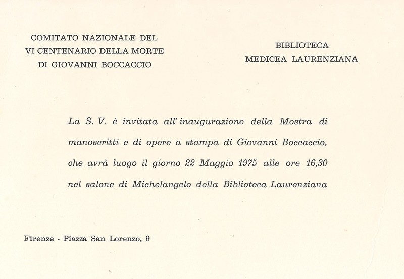 In occasione delle celebrazioni del VI Centenario della morte di Giovanni Boccaccio12 aprile 1975