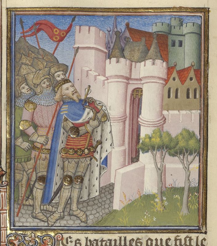 Parigi, Bibliothèque de l'Arsenal, 5193, f. 173r. Tolomeo viene ucciso durante una battaglia contro l'esercito dei Galati.